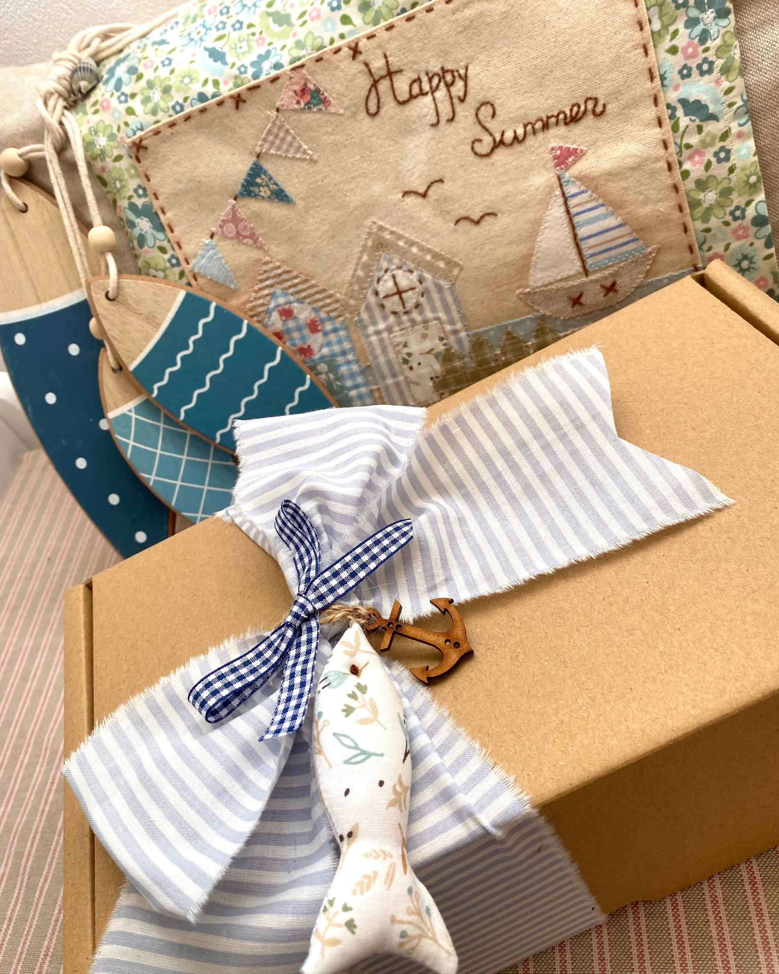 caixinha com itens surpresa confeccionados e escolhidos por mim, são itens decorativos, utilitários para casa e para nós.
